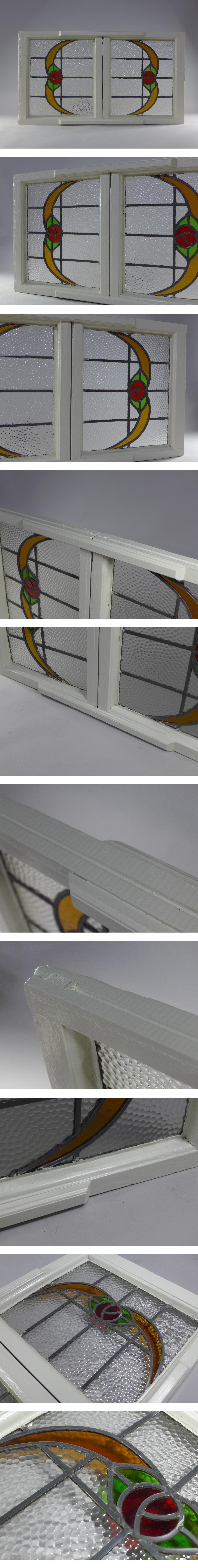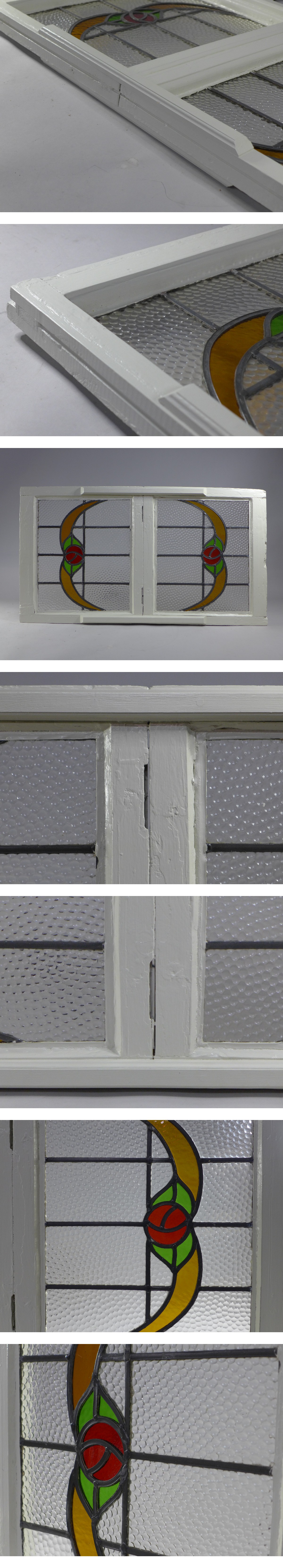 サイズ:約54・5x99cm。2枚の窓を繋げているようです。窓枠の厚み:約4・5cm。厚み:約8cm(一部厚みのある部分)。窓枠は木製で白いペンキで塗っています。ペンキの劣化有。とても趣のあるアンティークステンドグラスです。ガラスなどの割れはありません。状態など画像参照でお願いします。※他にもアンティークステンドグラスを出品しております。是非ご覧ください★★★★★★★★★★★★★★★★★★★★★★★★★最近、悪質な入札者が多く非常に迷惑をしております。新規IDや「非常に悪い・悪い」の評価の多い方の入札はお断りさせて頂きます。 仮に入札があった場合でも、発見次第入札を削除させて頂く場合がございます。