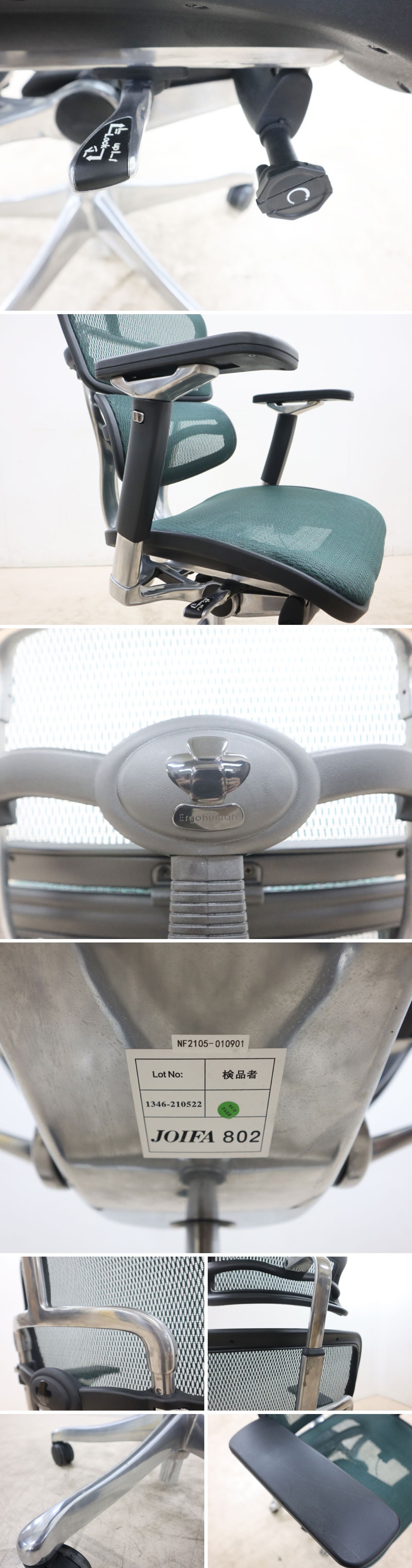 【仕様】 サイズ:約 W64×D67.5×H120~128.5・SH45~56cm、脚直径68cm ※実寸のため、多少の誤差は御了承下さい。 素材:本体フレーム/アルミダイキャスト、ポリッシュ仕上 キャスターベース/アルミダイキャスト、ポリッシュ仕上 張地/エラストメリックメッシュ タイプ:ファブリックタイプ、ストライプタイプ、ホワイト脚 カラー:グリーン系(画像は100%正確な色味では御座いませんので気になるお客様は世田谷区船橋の倉庫でご覧頂けます。色味による返品、返金等は一切お受けできませんのでご了承の上でご入札をお願い致します。) 機能:ヘッドレストの高さ&角度調整、バックレスト&ランバーサポート高さ調整、アームレスト高さ&角度&前後左右スライド調整、座面チルト機能、座面奥行き調整&昇降機能、座面奥行・昇降&リクライニング調整用レバー、リクライニングのテンション調整 ※こちらは旧型仕様となり、チルト機能の調整ハンドルは座面裏後部にあります。 |