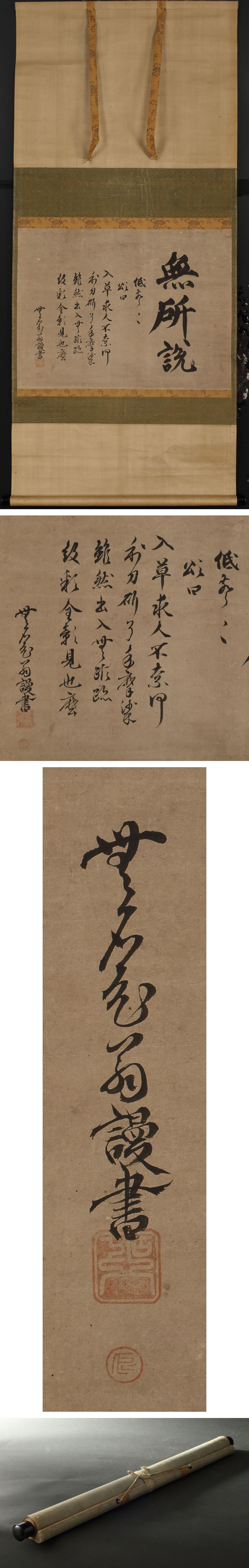 【模写】委託HK◇岡本宣就 三字置字横物「無所説」(掛け軸 近江彦根藩 家老 書家 岡本半介 岡本半助 嵯峨流 大師流 軍学者 上泉流) 收藏