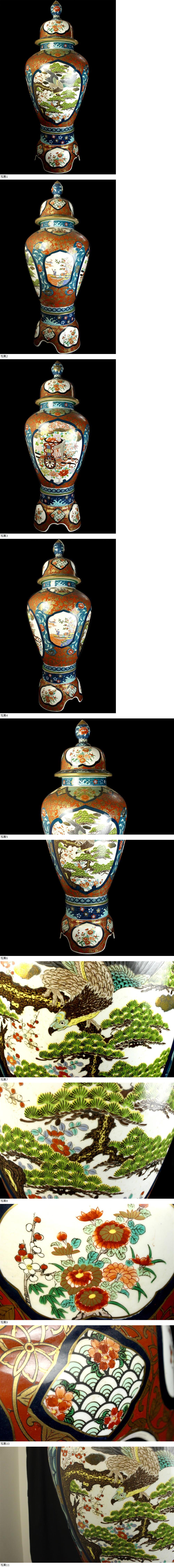 伝統工芸美術 有田焼 金龍堂 博山作 染錦 花鳥図御所車 沈香壷 高約120cm 蔵出品 【20K35】 收藏