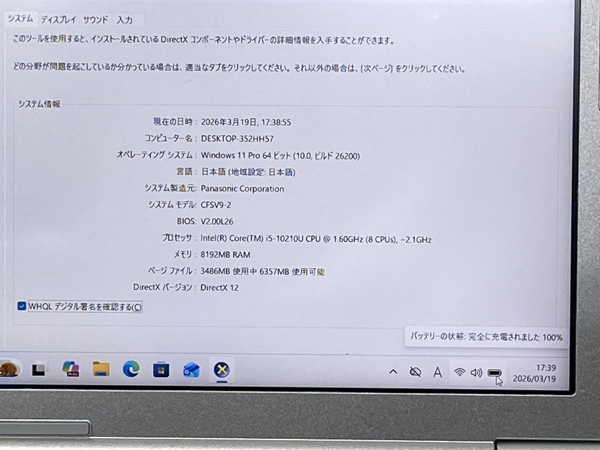 Panasonic パナソニック ノートパソコン中古 Let's note CF-SV i5第10世代 ノートPC i5 10th Gen メモリ8GB ssd256gb 12.1 フルHD LAPTOP