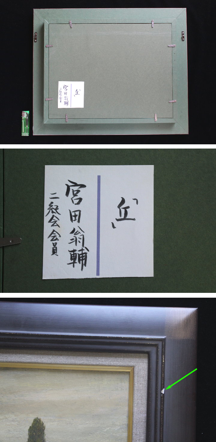 サイズ:F4号 二紀会/宮田翁輔「丘」油彩 4号 共シール です。 額には多少の傷みがあります。(写真参照) 額のサイズは 49.8×40.7cm です。 写真をご覧の上ご入札宜しくお願い致します。 | |