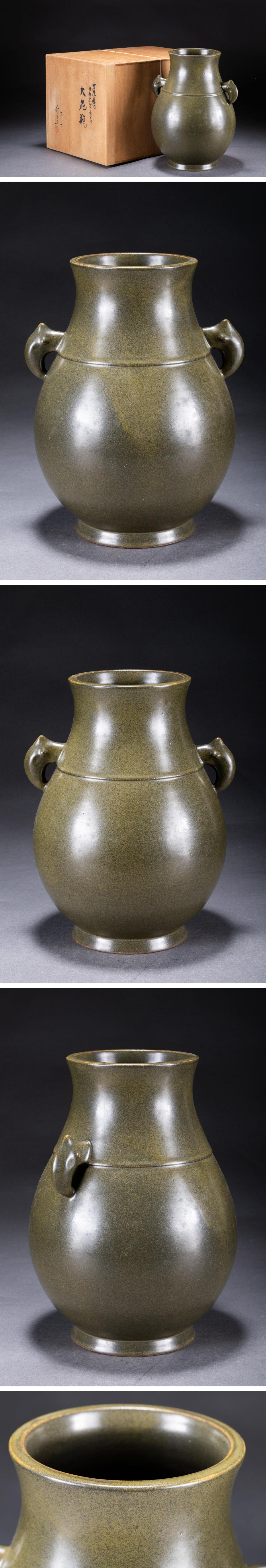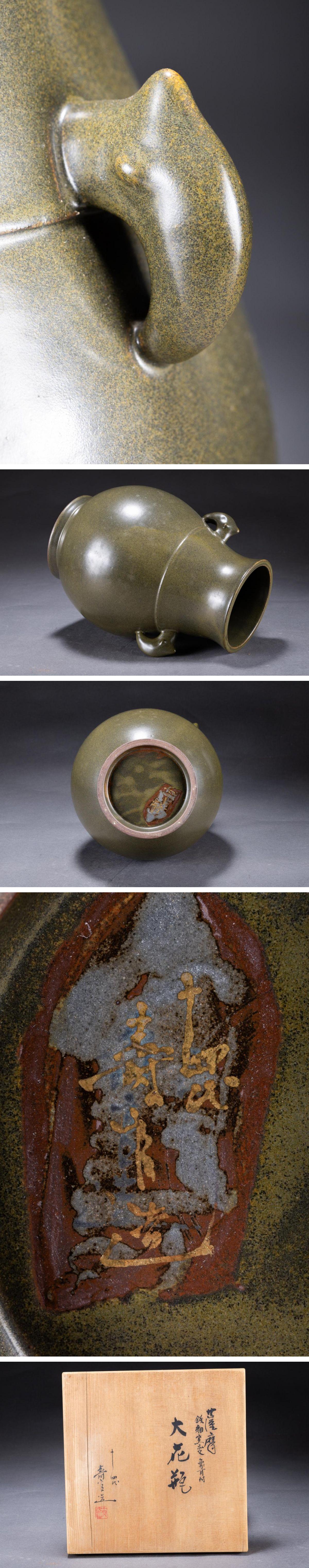 【華】某収集家放出品 時代物 薩摩焼 名匠「十四代沈寿官」造 鉄釉窯変大花瓶 古美術 骨董品A25090386-PQ 收藏