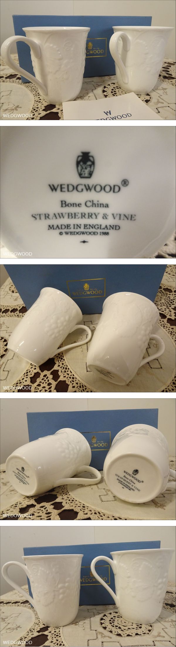 美品 1988年 イギリス製 WEDGWOOD ウェッジウッド MADE IN ENGLAND ストロベリー&バイン マグカップ ペア 2個 箱付 收藏