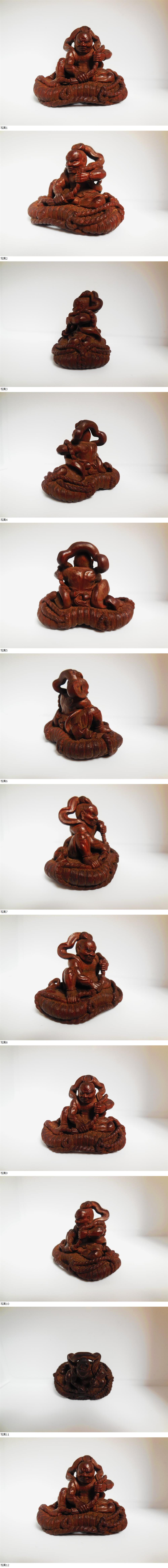 | ★この作品は先師、森田藻己作『木彫鞋仁王根付』を弟子の藻水が写した作品で藻己が大正7年(1918年)の日本美術協会第59回展覧会に出品され、銅牌を受賞した作品の写しだと思います。 | ||