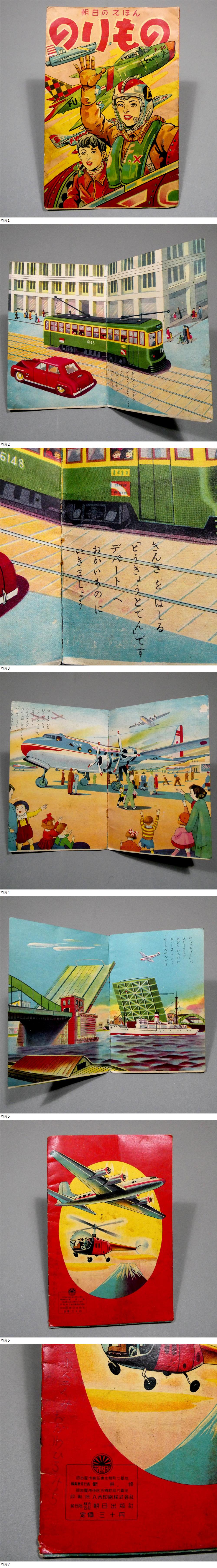 昭和20年代後半頃◆「朝日のえほん のりもの」◆名古屋 朝日出版社◆アメリカ戦闘機 F-86 銀座 都電 JALてんおう星 勝鬨橋■昭和レトロ 25 收藏
