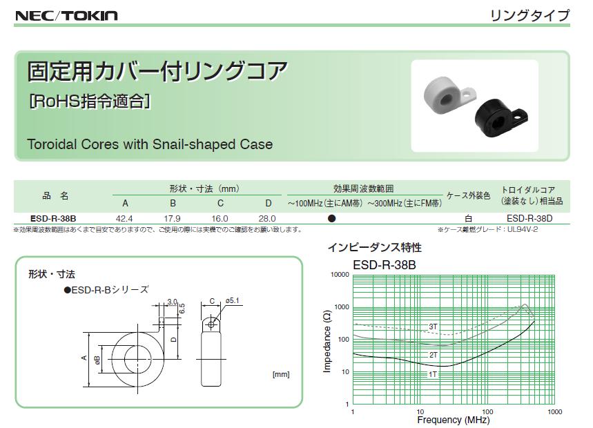 FN01 TOKIN 大型 固定用カバー付リングコア【ESD-R-38B】