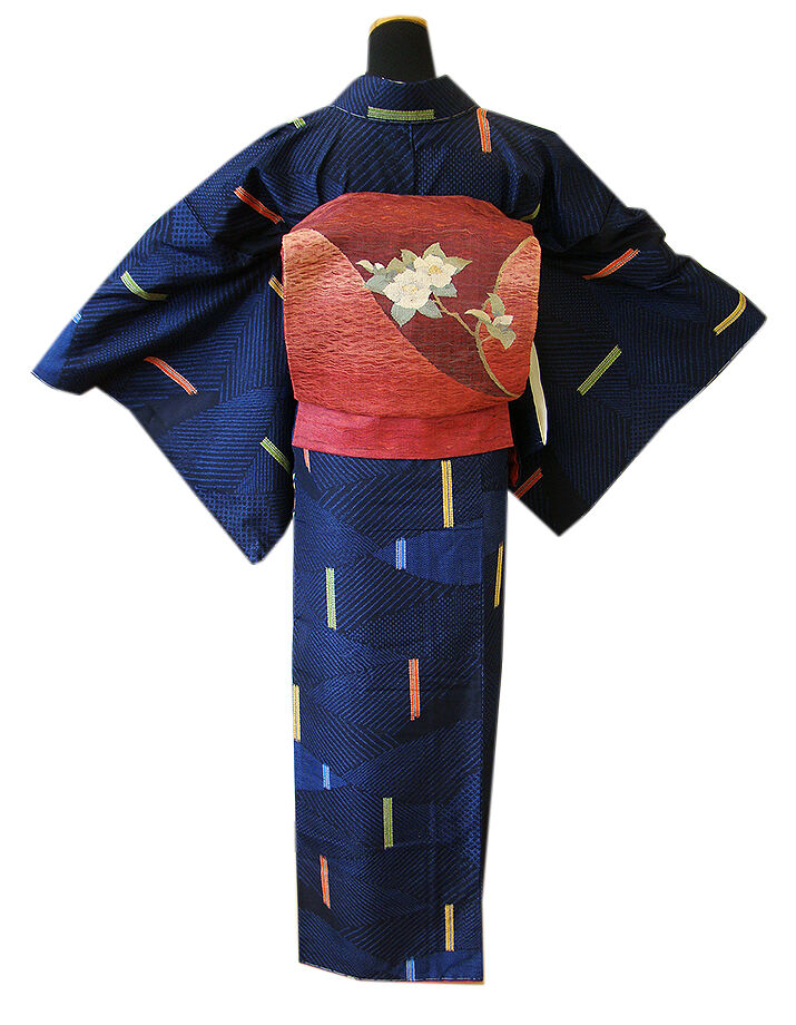| 商品説明 | こちらのお品は「袷」ですので10月~5月にお召頂ければと思います。 着物には、大きく分けて「袷(あわせ)の着物」と「単衣(ひとえ)の着物」と「夏着物」があります。 反物(表地)を着物に仕立てるときに、裏地類をつけるものを袷の着物、 つけないものを単衣の着物と呼び、胴裏や八掛といった裏地がつかない一枚ものの着物です。 しなやかでさらりとした風合いの紬地は、ぼそや節も味わい豊かな 濃紺色地に青、山吹、黄緑、橙、青色等の織柄、 八掛は赤色(正絹)、幅広い年代の方にお召し頂けます。 しっかりとした扱い易く結び易い櫛織の袋帯(たいこ柄)は、 浅蘇芳色地に花草柄の織柄が温もり溢れる帯姿を奏でております。 帯揚げは絞り、べにひ色地に絞り柄、 帯〆は平組、赤紅色地に蒸栗、薄青色等の編み込みの組紐(中国製)となっております。 |