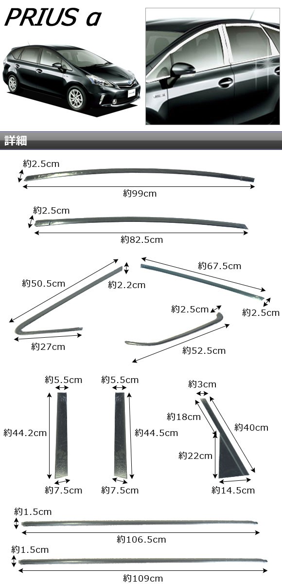 ウインドウトリムセット トヨタ プリウスα ZVW40,ZVW41 2011年05月~ ステンレス製 AP-DG075 入数:1セット(20枚) 收藏