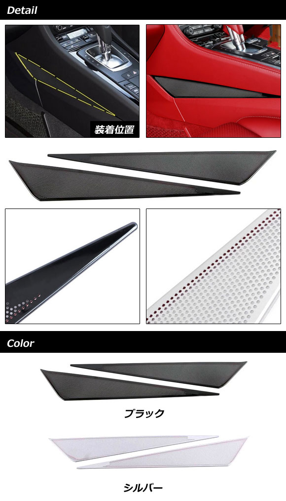 コンソールサイドガーニッシュ ポルシェ 718ケイマン 982 2016年04月~ シルバー ステンレス製 入数:1セット(2個) AP-IT3227-SI 收藏