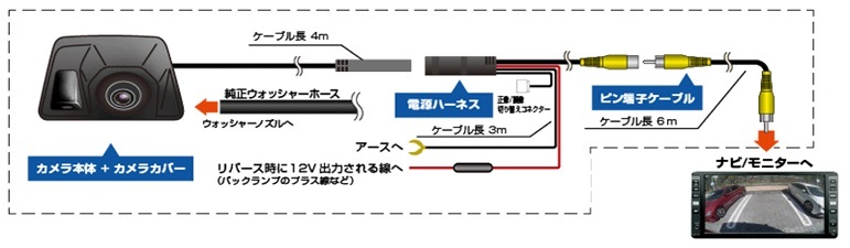 ※接続するナビやモニターの仕様によっては、リアカメラ入力ハーネス等の変換ハーネスが別途必要になる場合があります