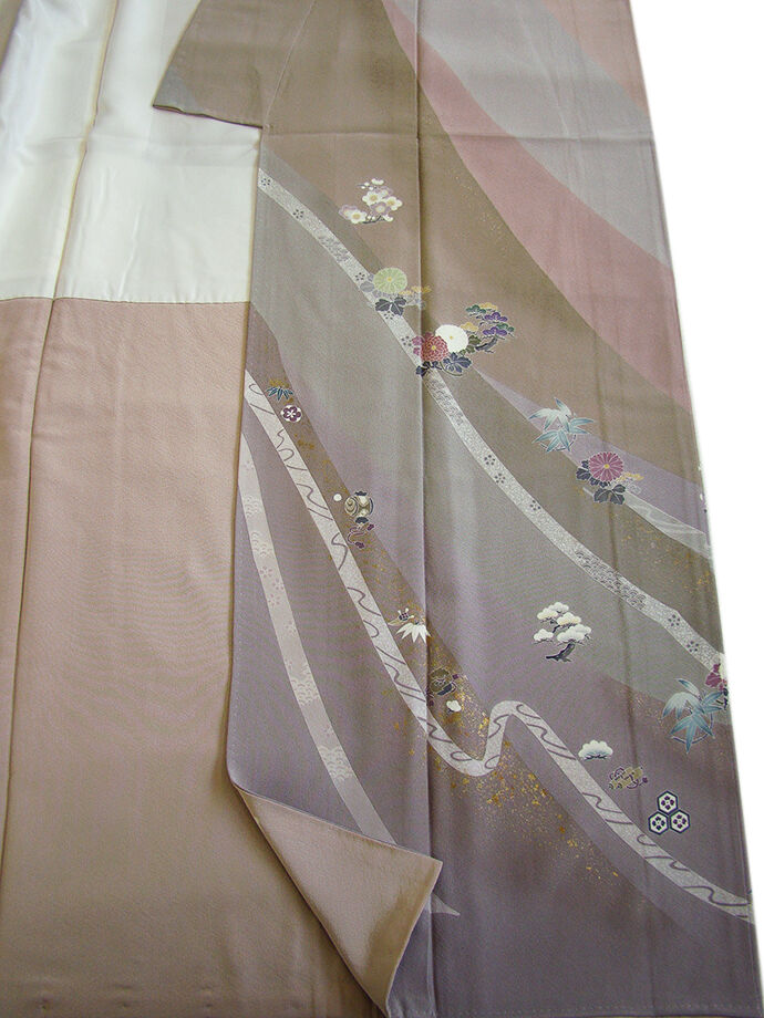 商品説明 | こちらのお品は「袷」でございますので、10月~5月までお召頂ければと思います。 フォーマルシーンに是非お召頂きたい京加賀友禅作家、「一梗」氏作の慶事の席にも 優麗艶美に愛でるやわらかな佇まいに心魅了される訪問着です。 とてもしなやかな柔らかな重めの上質な極上ちりめん地の生地、 穏やかで優しさを醸す様な鳩羽鼠、茶鼠、灰、牡丹鼠色等の地色に松竹梅や 四季の花木や宝尽し等の染柄に金彩加工仕立て、 美しく伸びやかに、そして丁寧に染め描かれた意匠は作家の穏やかな思想が溢れ 感性豊かに、和の色彩の組み合わせを見事に描き出した逸品です。 八掛は共布に柄入り(正絹)、裄が長め、幅広い年代の方にお召し頂けます。 京加賀友禅作家、「一梗」氏の落款が入っております。 |