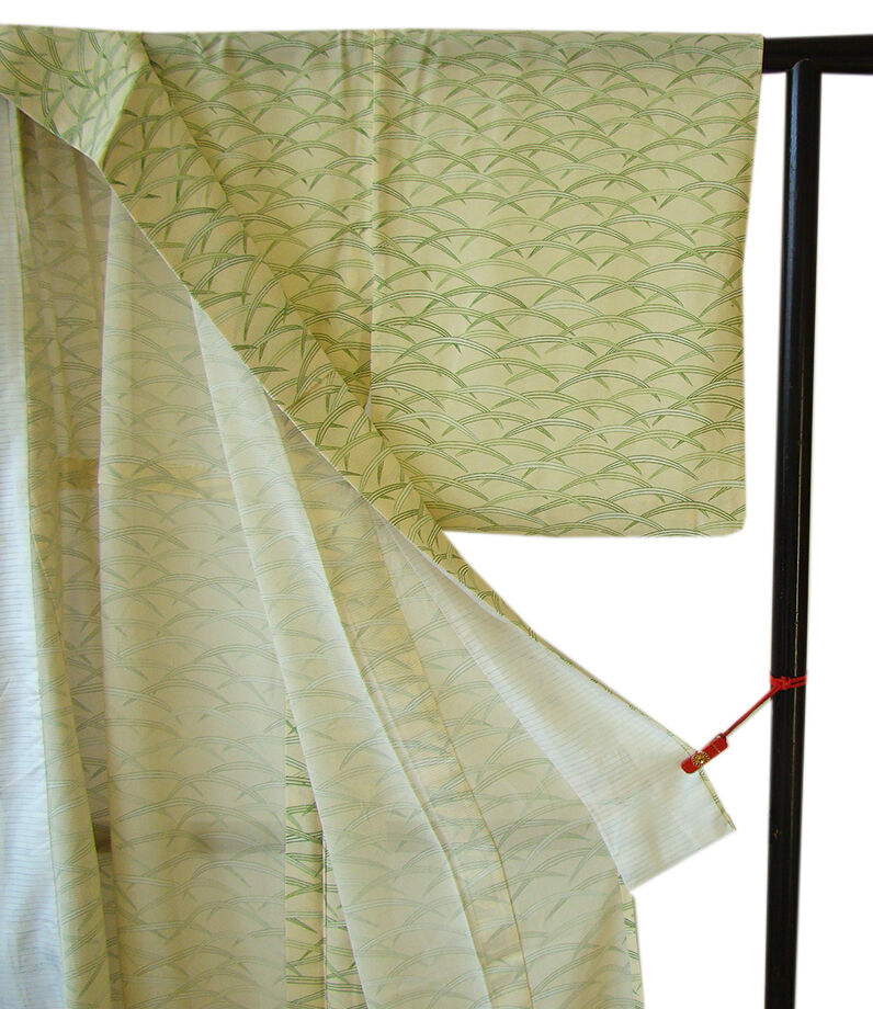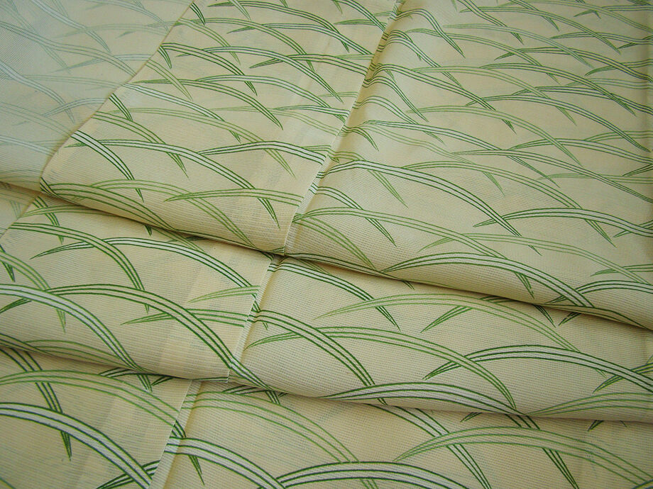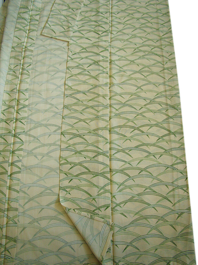 商品説明 | こちらのお品は夏物でございますので、7月~8月にお召頂ければと思います。 「絽」と言えば、紗と双璧を成す夏のお着物の生地で その最大の魅力は絶妙の透かし加減でございます。 清涼感溢れる地の風を通すしなやかさは夏に着物を着るという贅沢を 快適に愉しませてくれることでしょう。 着物には、大きく分けて「袷(あわせ)の着物」と「単衣(ひとえ)の着物」と「夏着物」があります。 反物(表地)を着物に仕立てるときに、裏地類をつけるものを袷の着物、 つけないものを単衣の着物と呼び、胴裏や八掛といった裏地がつかない一枚ものの着物です。 また裏地がないため、座る時などにヒップのラインが目立たないよう、 居敷当て(いしきあて)の生地をつけることもあります。 居敷当ては付いておりません。 とてもしなやかなさらっとした肌触りが極上の着心地を誘う滑らかな「駒絽」の生地、 クリーム色地に白、黄緑色のつゆ草柄の染柄が洒落感溢れる着物姿を演出しております。 |