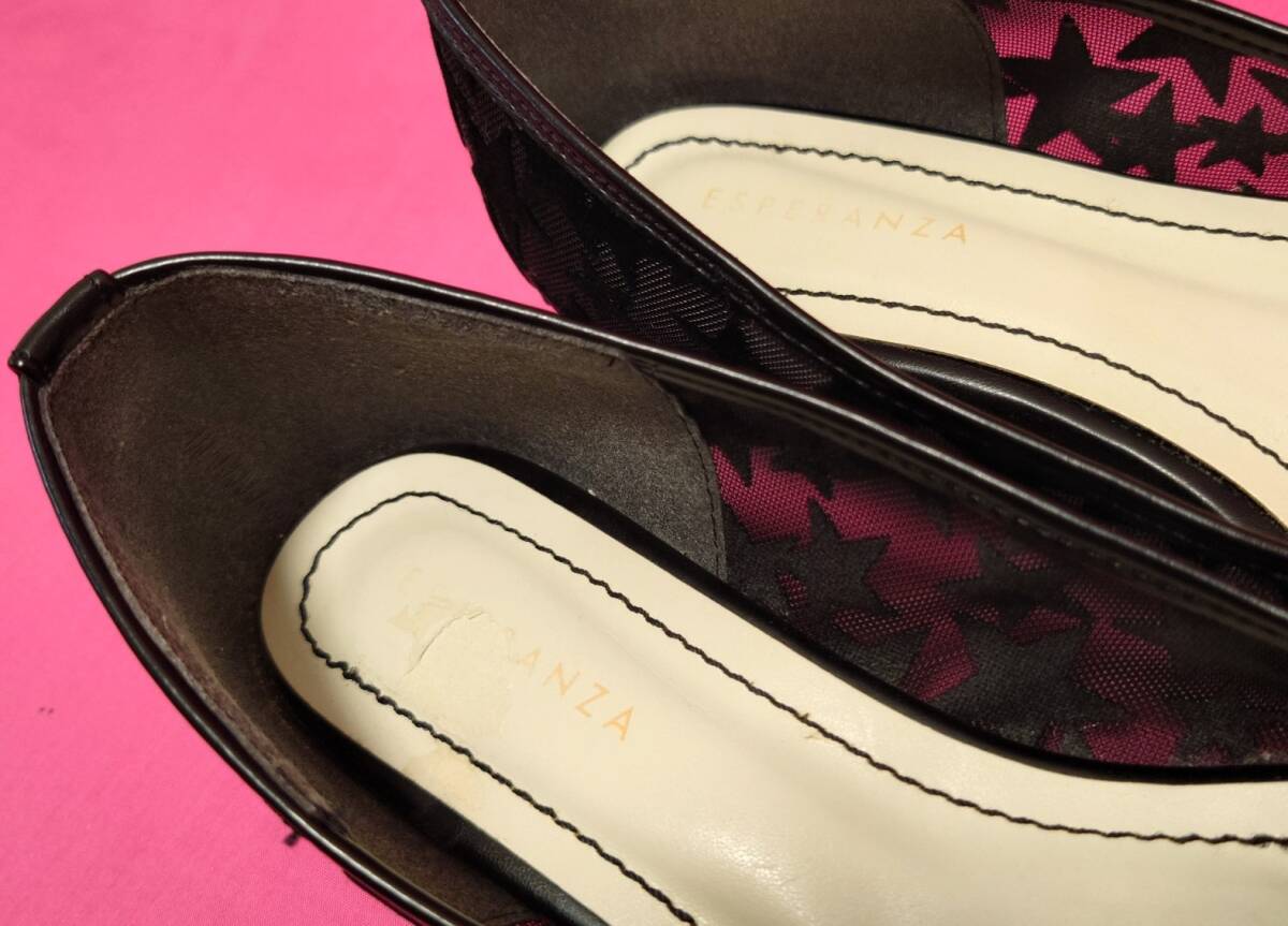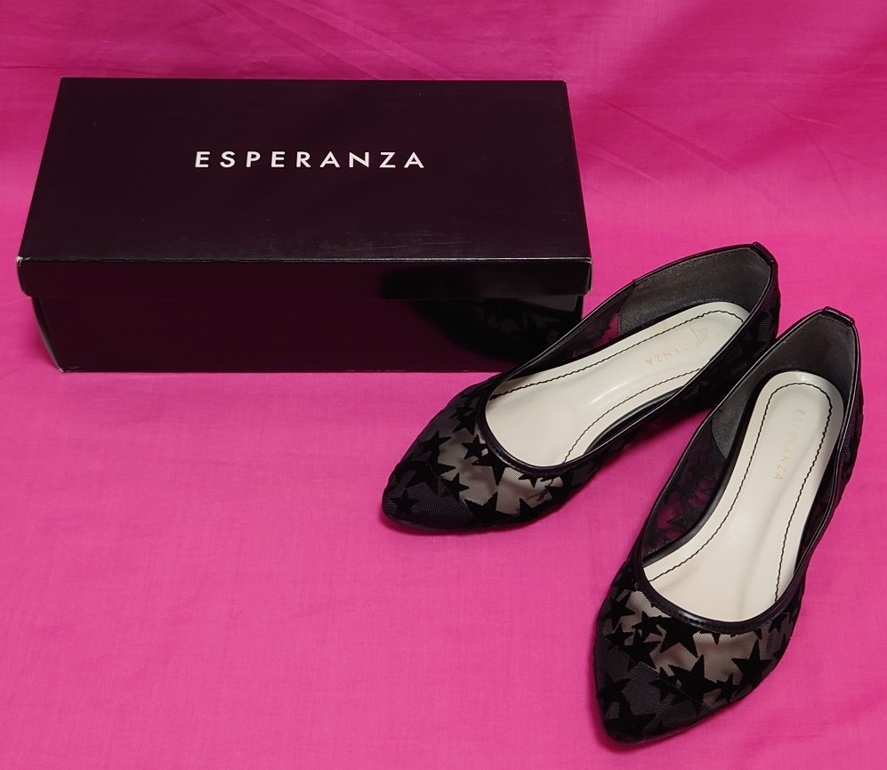 ESPERANZA黒星柄スターポインテッドフラットパンプス22.5cmSサイズMエスペランサ靴 收藏