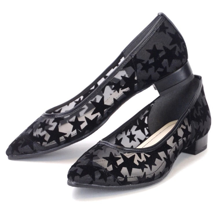 | ESPERANZA黒星柄スターポインテッドフラットパンプス22.5cmSMエスペ | |