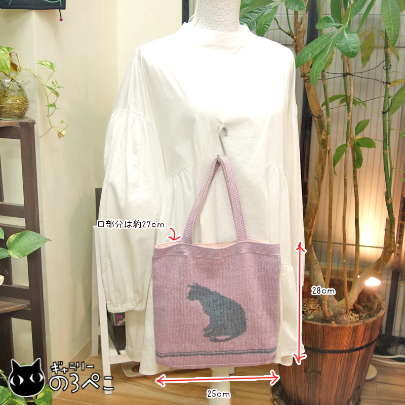 猫ちゃんシルエットのニットの手提げバッグ(藤色にグレーお座り猫ちゃん・コットンリネン内袋) bc630-242 收藏