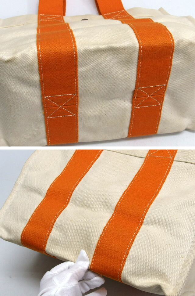 | 商品名 | ボラボラPM トートバッグ ハンドバッグ キャンバス コットン100% ホワイト系 オレンジ ホック式開閉 セリエ金具 シルバー金具 レディース |