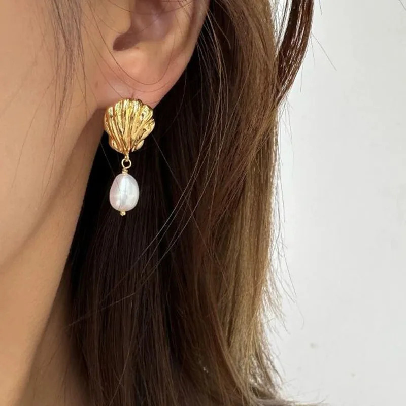 ピアス ステンレス パール シェル 揺れる レディース 貝殻 リアル ダングル スチール 夏 サマー ホリデー ジュエリー 防水 收藏