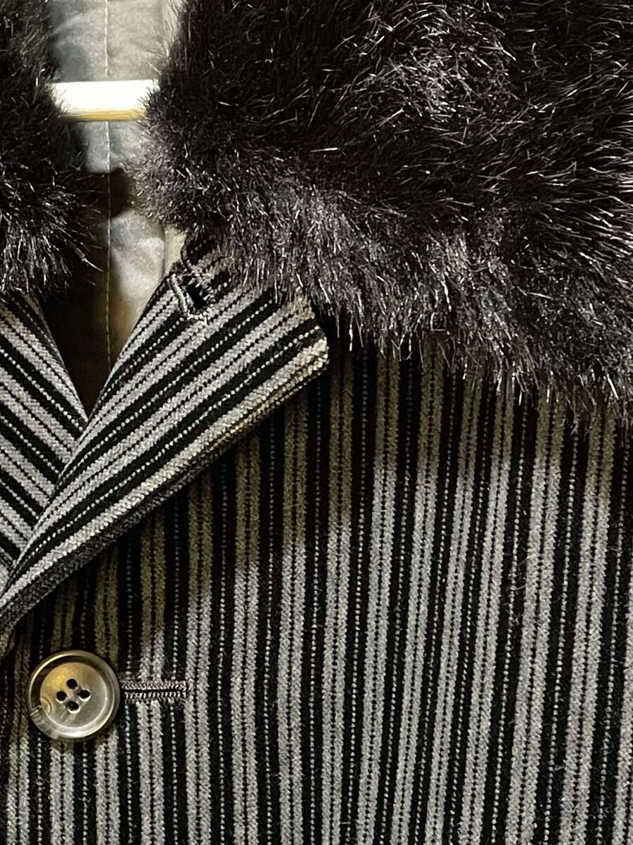 DOMON HOMME ドモンオム ★ テーラード ジャケット ハーフコート ベルベット Party イベント 黒グレーストライプ セットアップ F 美品 收藏