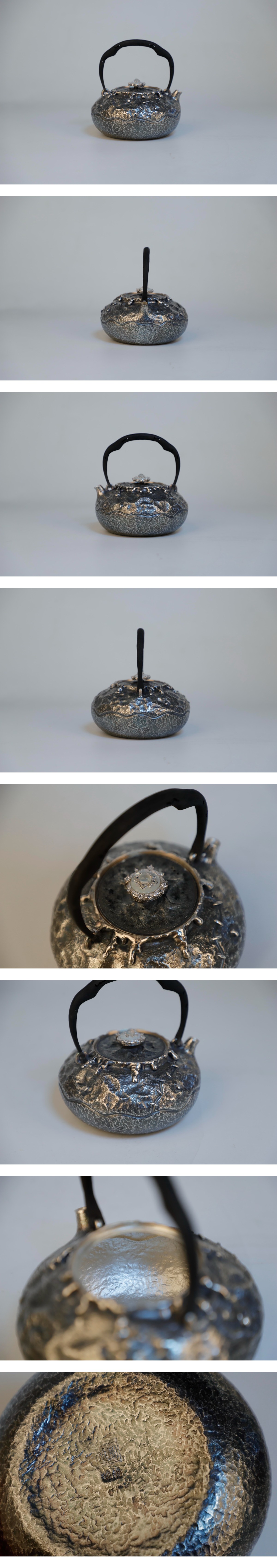 時代 純銀製 大国造 平丸形 岩目 パッチ 湯沸 工芸品 美術品 銀瓶 煎茶道具 收藏