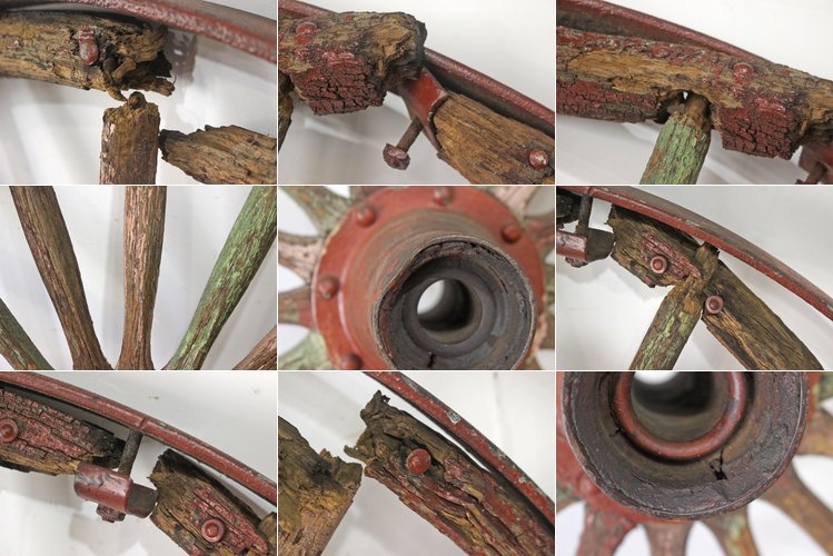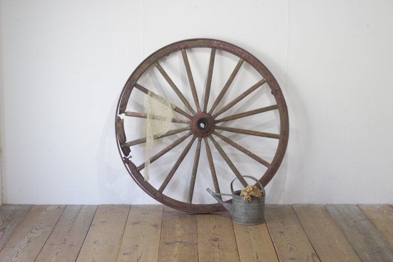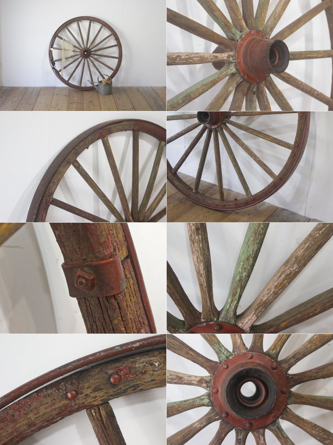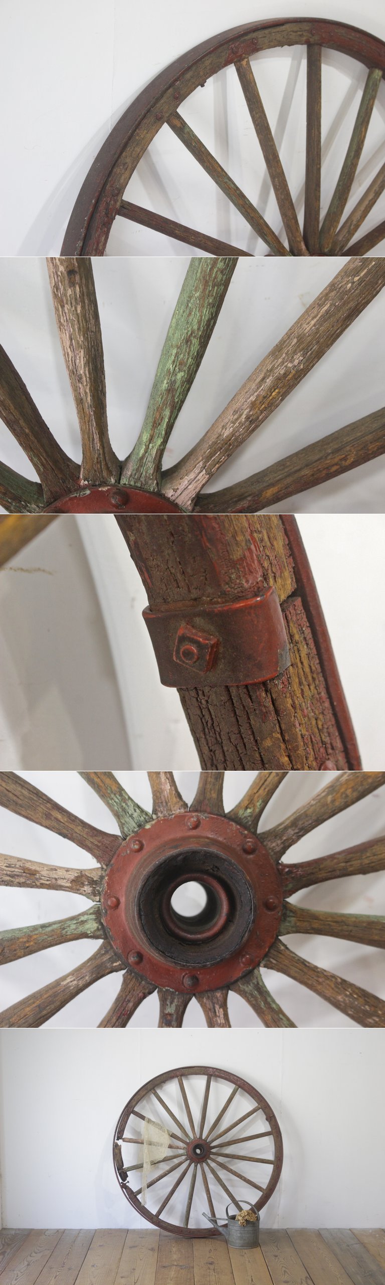 レトロ ヴィンテージ 大車輪 大八車 ウッドホイール オブジェ ディスプレイ C/古道具ガーデニングアンティーク英国 收藏