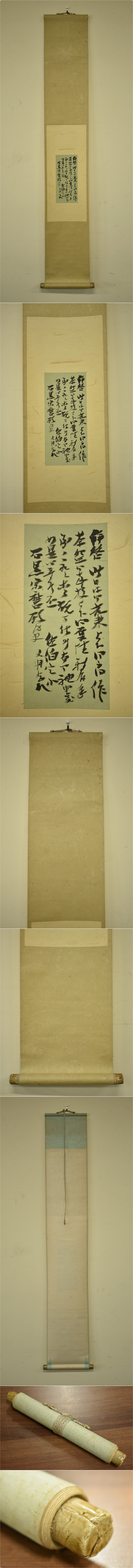 ★商品説明・詳細など★ | ■真筆 掛軸 人間国宝 石黒宗麿 佛山 栩庵 書 紙本 茶道具 茶掛け (富山の人 陶芸家) *商品落札後のお支払期限は4日以内とさせていただきます。 4日を過ぎるとキャンセルとなり、自動的に【悪い】の 評価がつきますので御注意下さい。 ご理解の程、宜しくお願い致します。 ■USED品 ・全体に薄ヤケや薄汚れ、シミがあります。 ・折れやシワ、ヨレ等があります。 ■本紙:紙本 ■寸法 全体:縦136 横22cm 本紙:縦24 横11cm 軸先含む全長:約26.5cm (参考程度にお考え下さい。) ≪商品発送サイズ≫ ゆうパック 【 80サイズ 】 での商品発送です。 【発送元:石川県】 【配送料】はこちら→ ゆうパック送料(郵便局公式HP 180サイズ以上30kg以上の配送は佐川急便のみの配送となります。 【配送料】はこちら→ 佐川急便 飛脚宅配便送料(佐川急便公式HP) ※ゆうパック及び佐川急便公式HPで送料を明記してある場合は送料に関するご質問はお答えできません。 ●画像に映っているものが商品及び付属品の全てです。他に付属品はございません。 ●オークション落札後の品の状態等の質問はお答えできません。必ず入札前に質問をお願いします。 ●商品説明と商品画像に相違がある場合は画像優先にてご判断ください。 ●商品の状態は説明欄、商品画像にてご確認くださいませ。 ●送料や配送方法、商品の状態をご確認の上お客様のご判断でご入札をお願いいたします。 ≪絵画の出品に関するルール改定≫当店も新ルールにしたがい絵画の出品方法を一部変更致しました。 ●(1)特定の作者の作品としている場合は、真作または模写と明記すること。 ●(2)特定の作者の真作としている場合は、万が一真作でない場合に返品を受ける旨を商品説明に明記すること。 ●(1)について、真作でないものは、最悪第三者による模写の可能性があるため、全て模写として出品いたします。 ●真作を出品する場合は、真作であることを明記し、万が一真作でない際には返品を受ける旨を商品説明に明記すること。(ノークレーム・ノーリターンの対象外商品です。) |