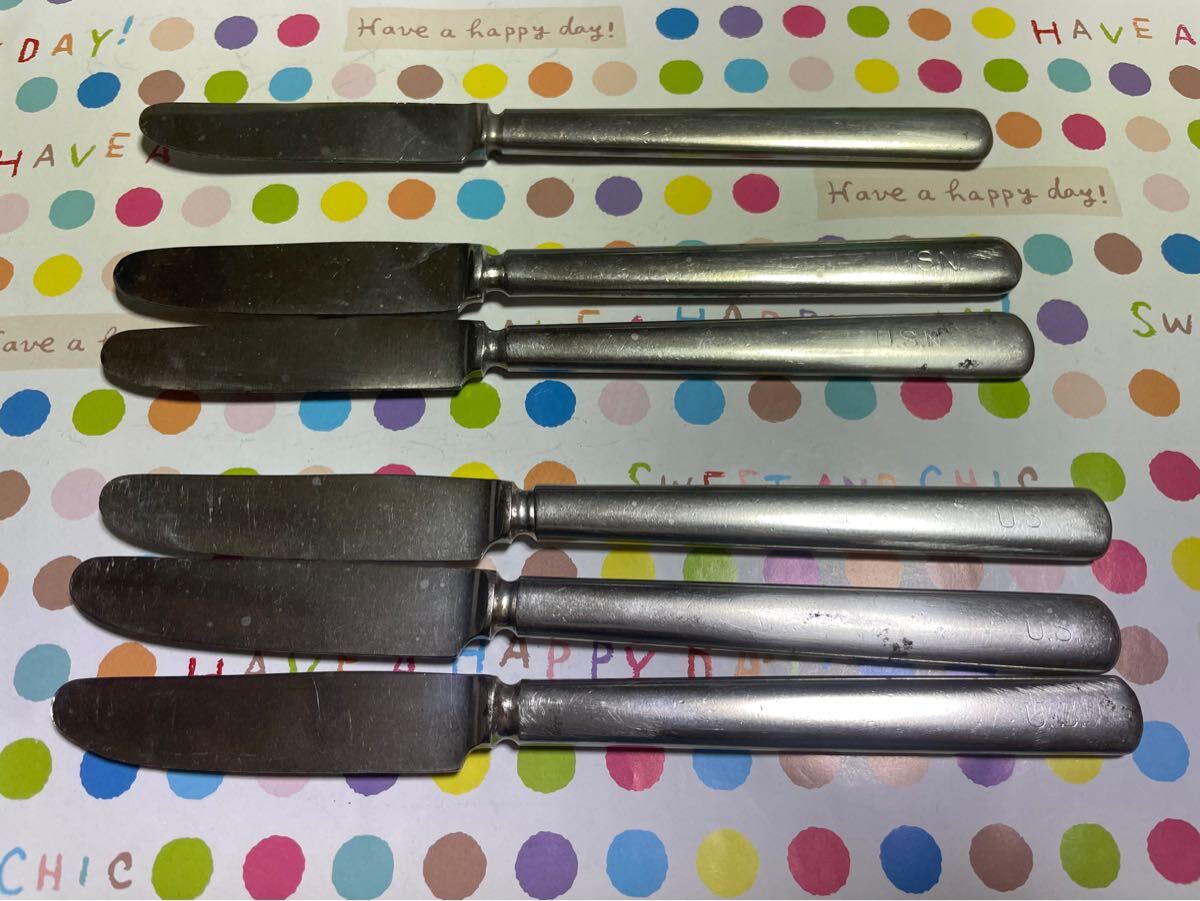 U.S 3本 U.S.N 2本 記載無し1本 入手困難 昭和 レトロ アンティーク テーブルナイフ 收藏