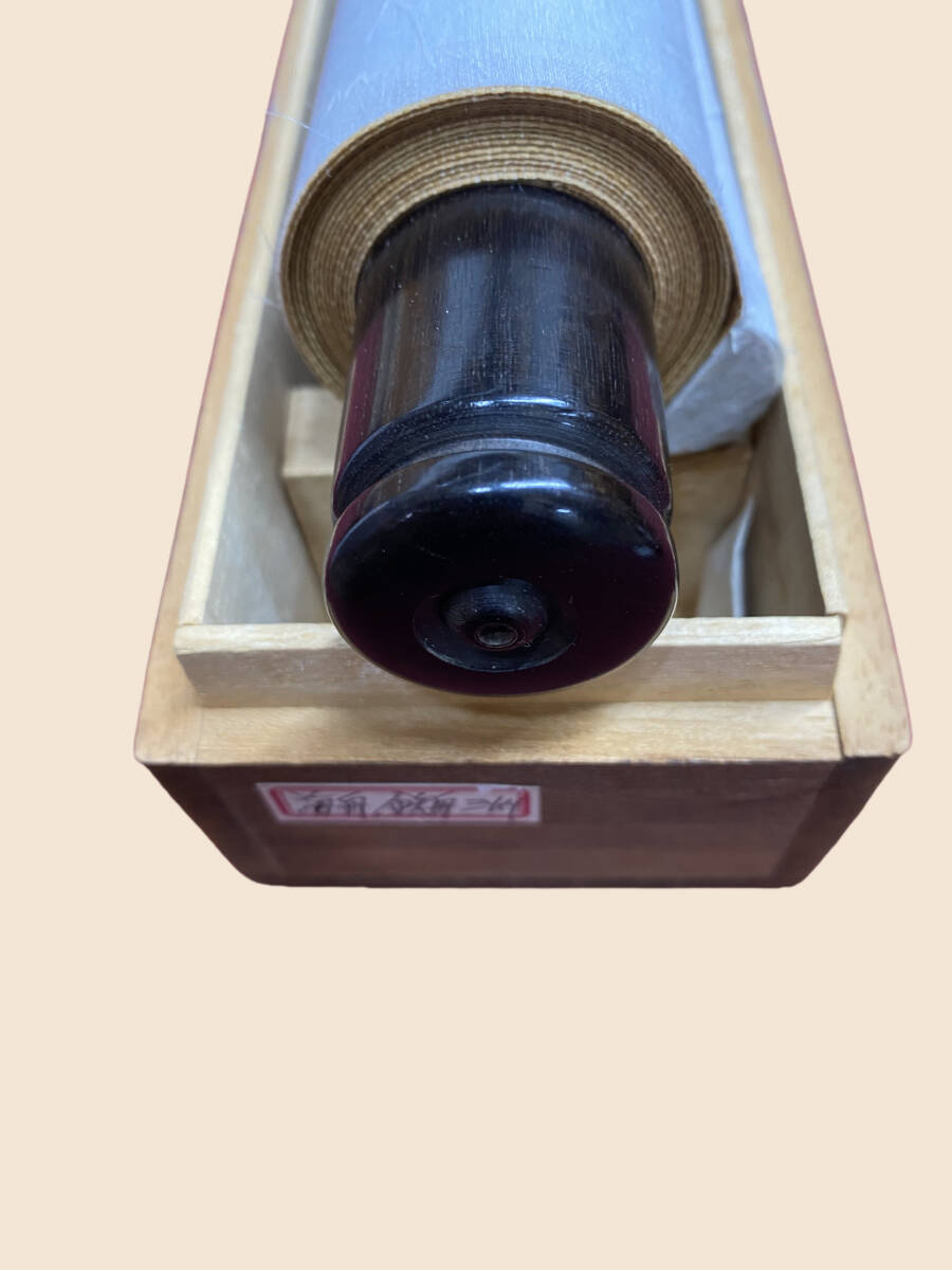 掛軸の軸先ですが、配送中の振動・気温・経年劣化等で外れてしまうことがあります。軸先の外れは、返品の対象にはなりません。大変お手数ですが、お客様ご自身での修復をお願い致します。