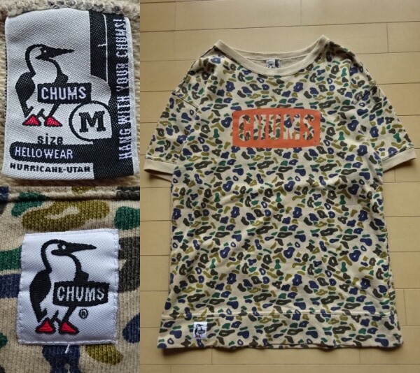 【CHUMS】カモフラ柄 CHUMS-LOGO 半袖スウェット ベージュ系迷彩 SIZE:MEDIUM (チャムス,キャンプ,アウトドア) 收藏