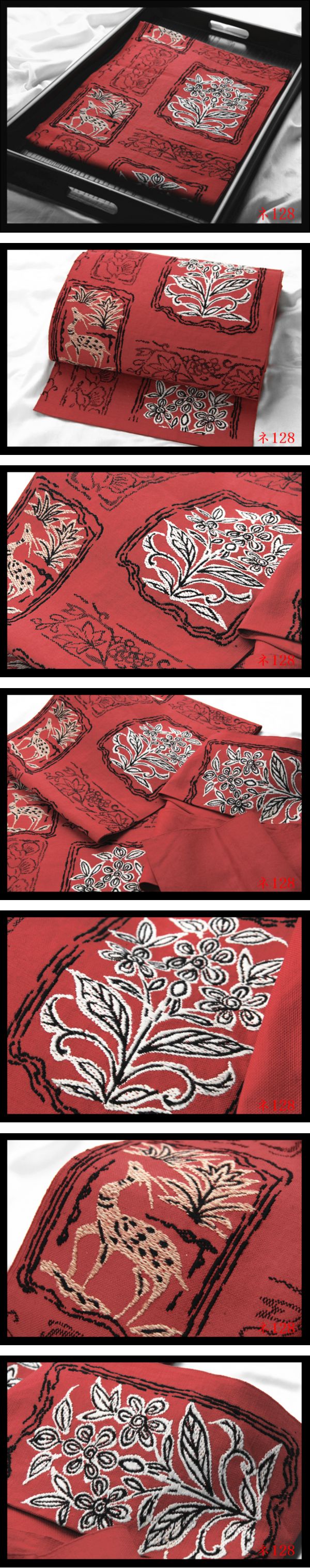 【ネ128】西陣美品 手織 紅赤色地 気品豊かに 正絹高級美術名古屋帯 ◇検◇簪着物袋帯名古屋帯帯締め 收藏