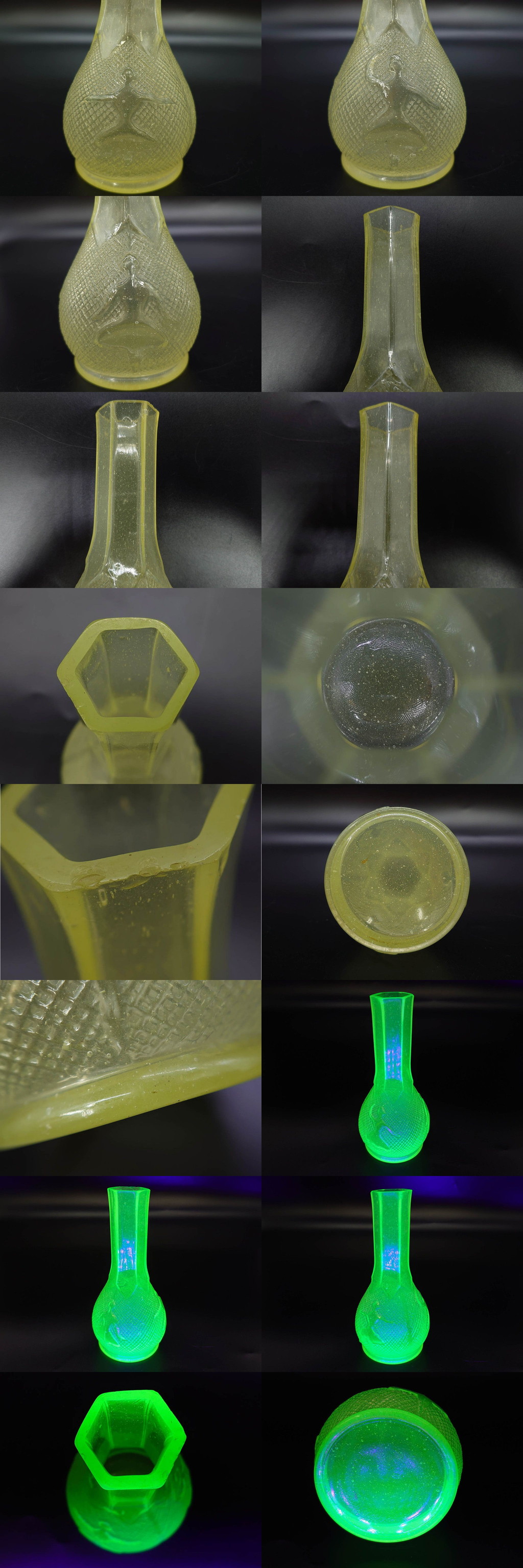 R-082867 大正~昭和初期 ウランガラス バレリーナ ガラス瓶2点セット(一輪挿し、花瓶、花生、花入、花器、硝子、和ガラス) 收藏