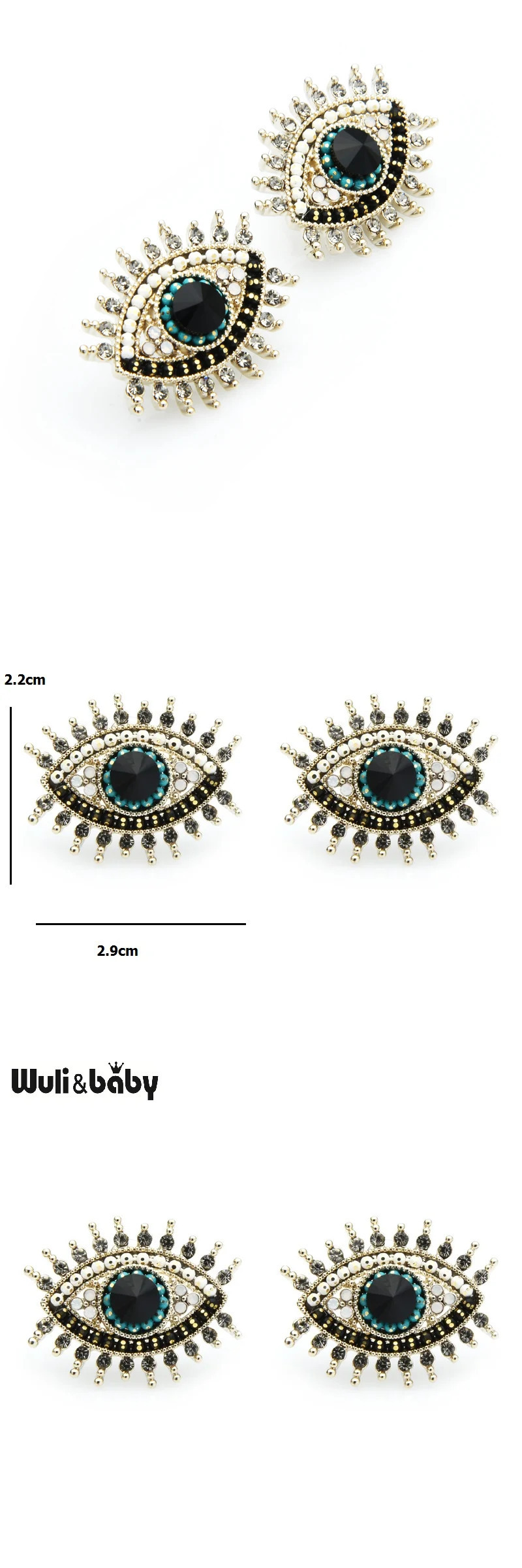 ピアス ラインストーン ブラック レディース スモール 黒 ブルー 青 目 アイズ スタッド 新しい デザイン 收藏