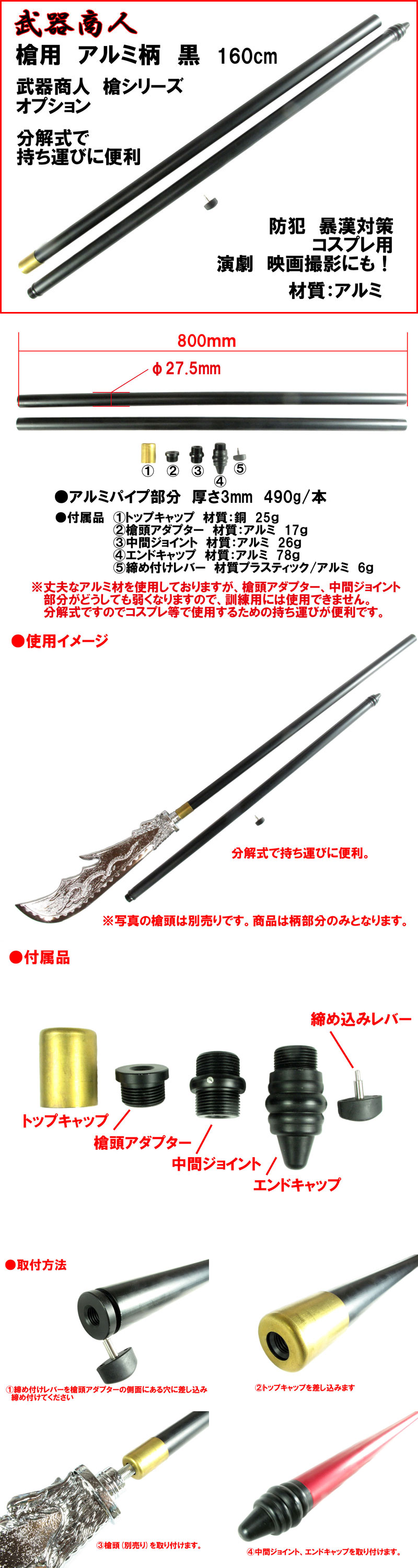 【さくら造形 TS320BLK】槍シリーズ用 アルミ分解タイプ 柄 黒 160cm 別売り槍頭と組み合わせれば本格派槍に 持ち運びに便利な分解式 n2ib 收藏