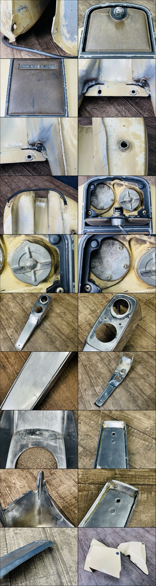 状態チェック担当者のコメント 全体的に傷、汚れが多くダメージがあります。 年式が古くタンク内錆があるかもしれません。鍵が曲がっていて鍵をかけてても開きます。 鍵回りの皮が破けており、フレーム塗装剥がれいます。ゴム類劣化していひび割れや取れています。 メーター部分にはめるメッキは、錆擦り傷多くある状態です。 タンクコンソールには数字の記載がありますが他3点には記載がありません。 現状でのお渡しとなります。 商品は写真にあるもので全てです。 必ず写真で確認お願い致します。 他にもたくさん出品しています。 同一梱包致しますのでよろしくお願いします。 ※ジャンク品の商品は、故障や破損、欠品、動作未確認、 正常な動作のお約束ができない等、 様々な理由にてジャンク品として販売をさせて頂いております。 その為、商品の返品・返金・交換等の 対応は出来ません。 修理、パーツ取りなどを想定しお買い求め下さい。 ※保証について 動作保証と記載のある商品については、商品に不具合が生じた場合、 商品到着後8日以内は返品、返金をお受けいたします。 取付や工事が必要なものに関しましては、 それに必要な費用は当方では負担致しません。 取付費、工事費は保証対象外となります。 当方で販売いたしました商品が明確な原因で重大な事故へと発展いたしました 場合にも、商品代金の2倍以上の責任は負いかねます。 商品を利用される際には、必ず状態をご確認ください。 |