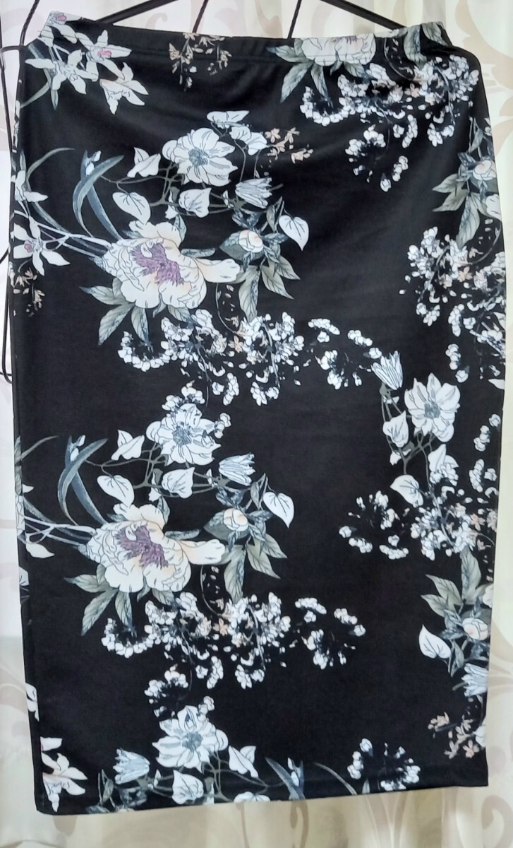 花柄スカートLタイトスカートL黒ブラック膝丈スカートL 收藏