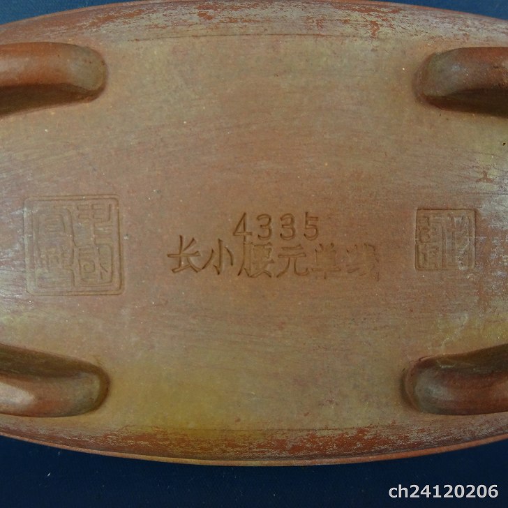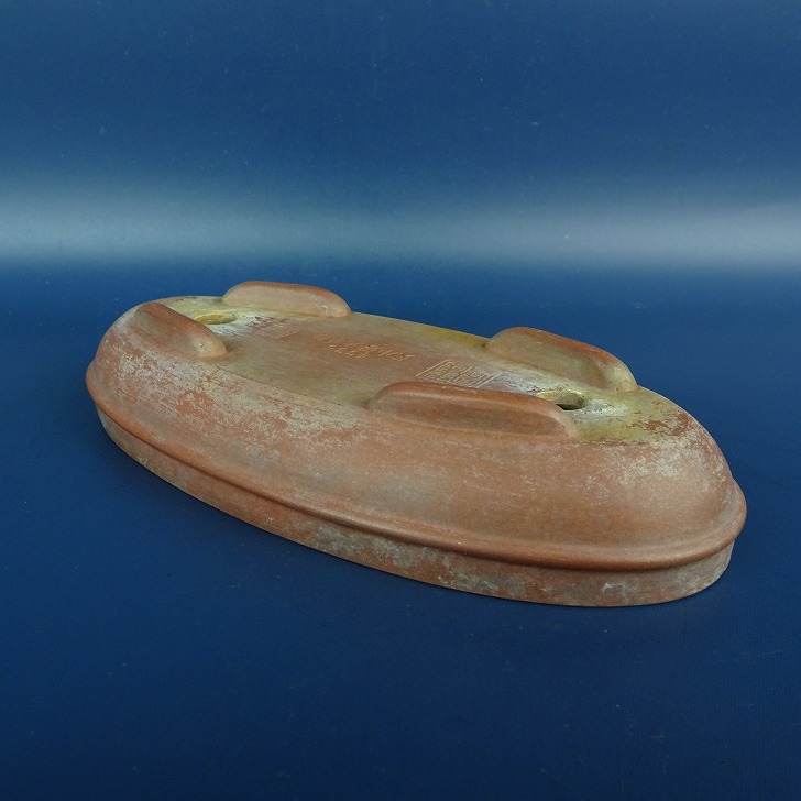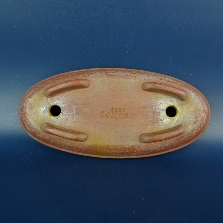 【中古】盆栽鉢 中国宜興 w落款 ナンバー 4335 小型 長辺 約15.3cm 楕円鉢 泥鉢 中帯 中国鉢 現品 中古鉢 收藏