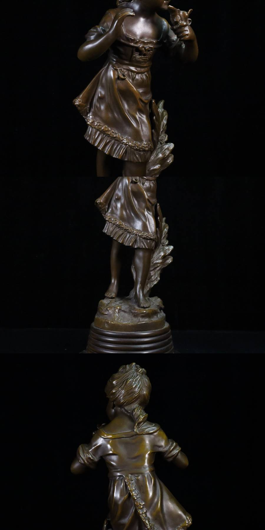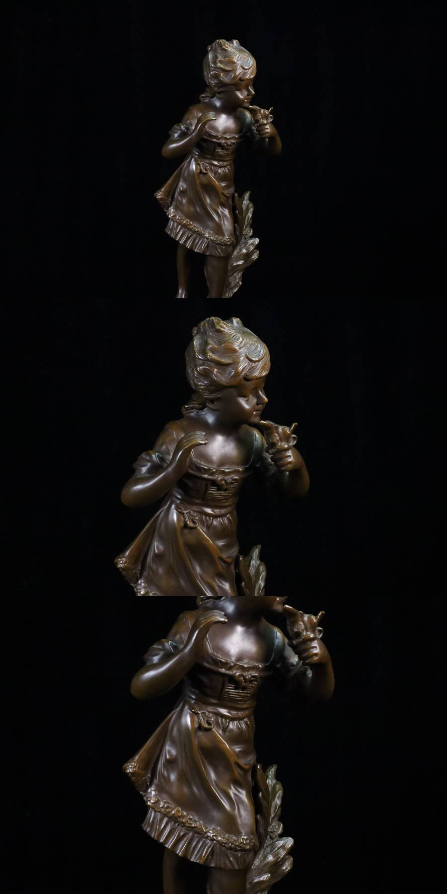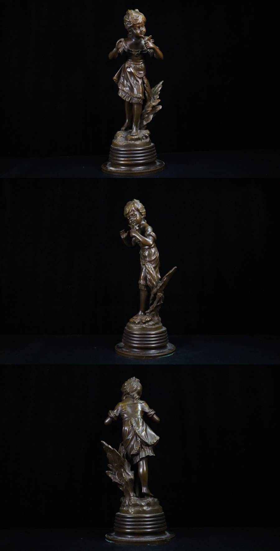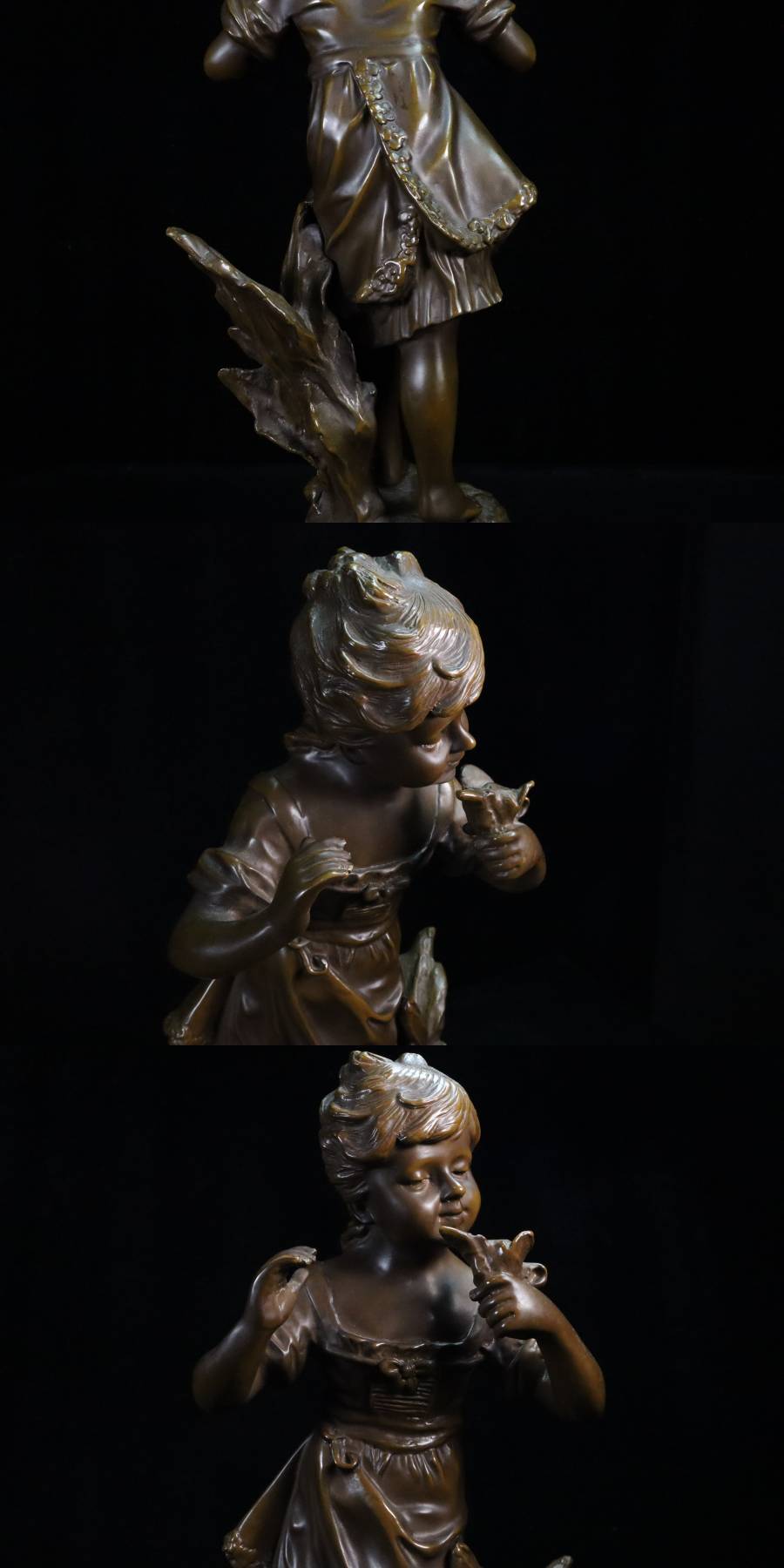 ◇雅◇ 19世紀 フランス彫刻家 オーギュスト・モロー Auguste Moreau ブロンズ像 少女 高さ48cm/7895g /RYO.25.8 [M53] PO 收藏