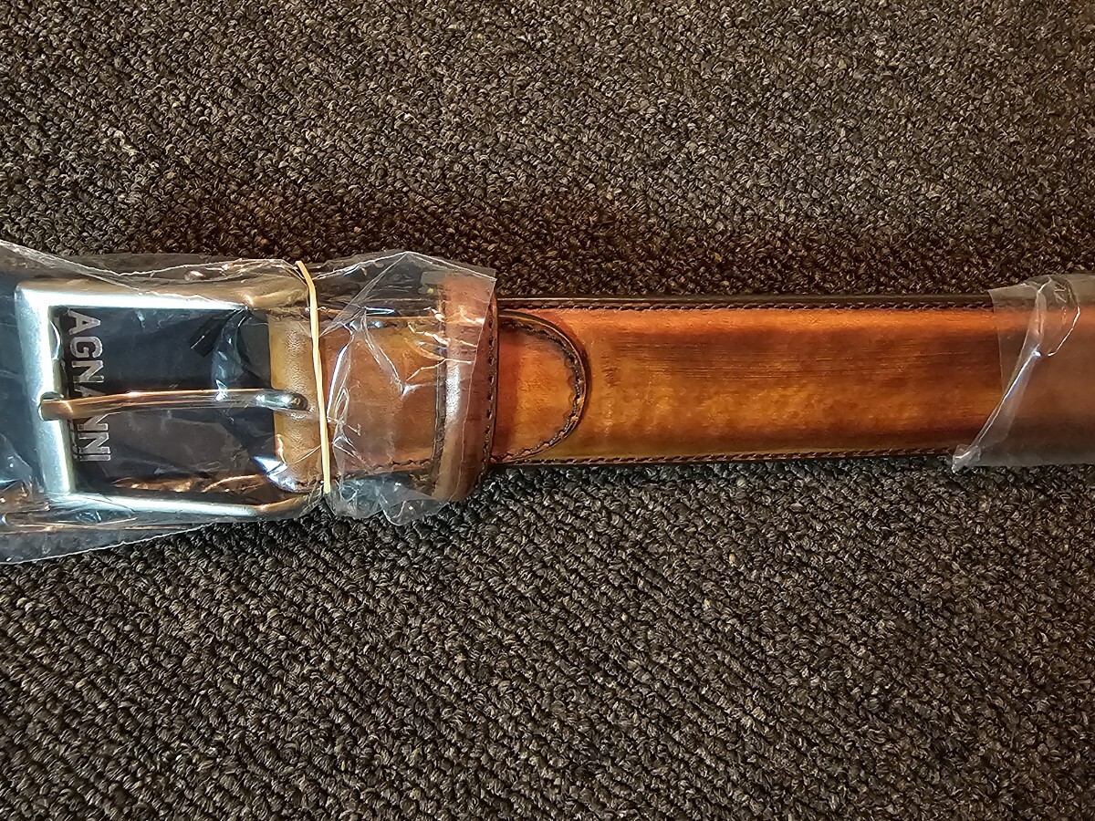 ⑦【未使用】マグナーニ MAGNANNI レザーベルト 105 1076 ライトブラウン あめ色 5 收藏