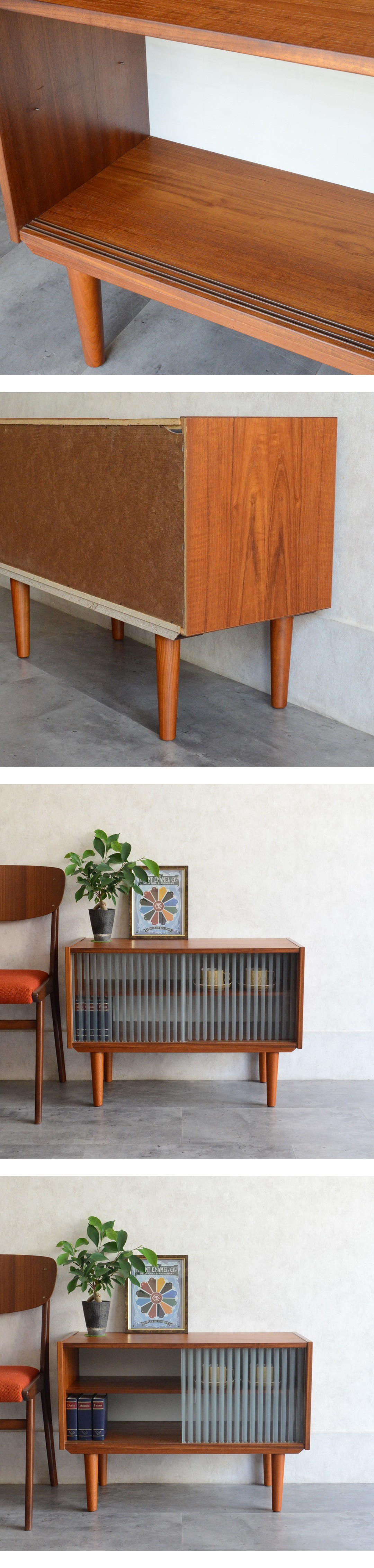 デンマーク 北欧ヴィンテージ チーク ガラスキャビネット ガラス引戸 北欧家具 ショーケース ディスプレイ 北欧デザイン ガラスケース 戸棚 收藏