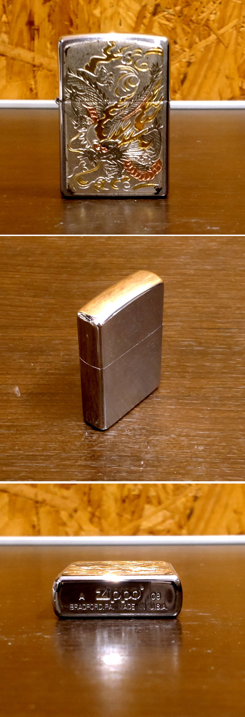 【侍】電錫板 デンチュウバン 2008年製 龍 ドラゴン ZIPPO ジッポー 箱付 着火確認済 20=333 收藏