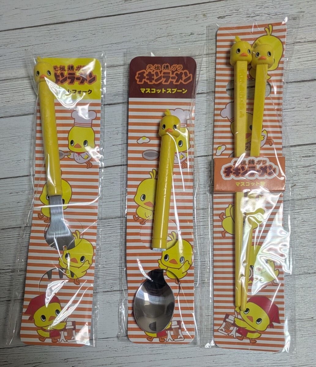 #0 ★新品未開封★チキンラーメン ひよこちゃん カトラリー マスコット付き スプーン フォーク 箸 セット 250920