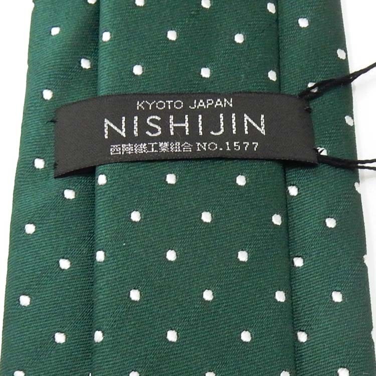 京都西陣織 ネクタイ シルク100% 緑/ドット メール便OK NJ-D04 收藏