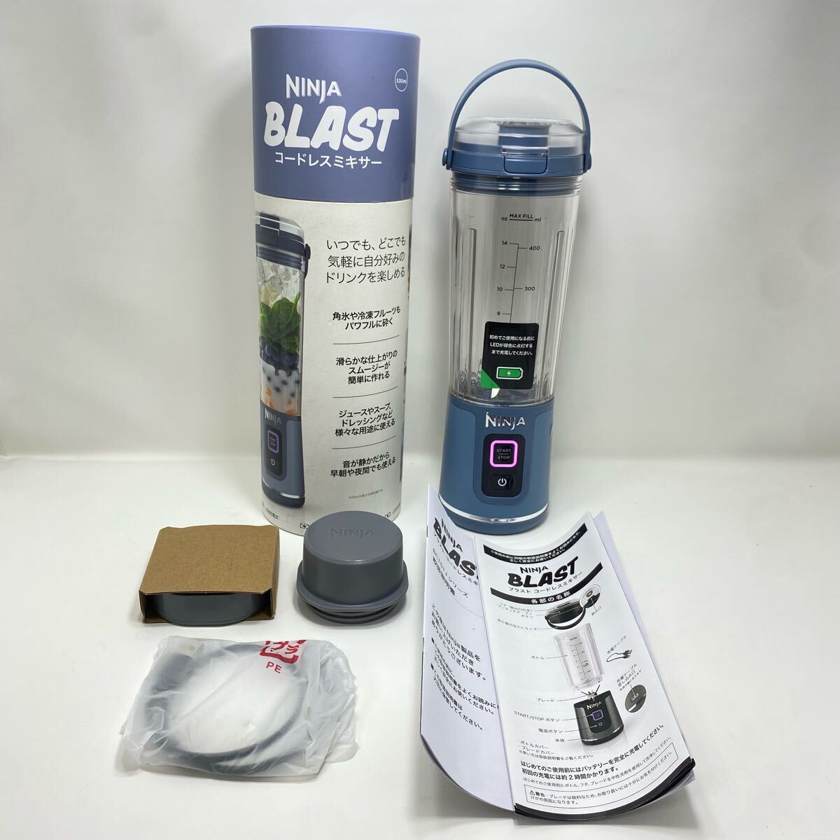 美品 NINJA BLAST コードレスミキサー 充電式 静音 清潔 6枚刃 530ml スムージー ジュース スープ ドレッシング 無臭 動作確認済み YMa 收藏