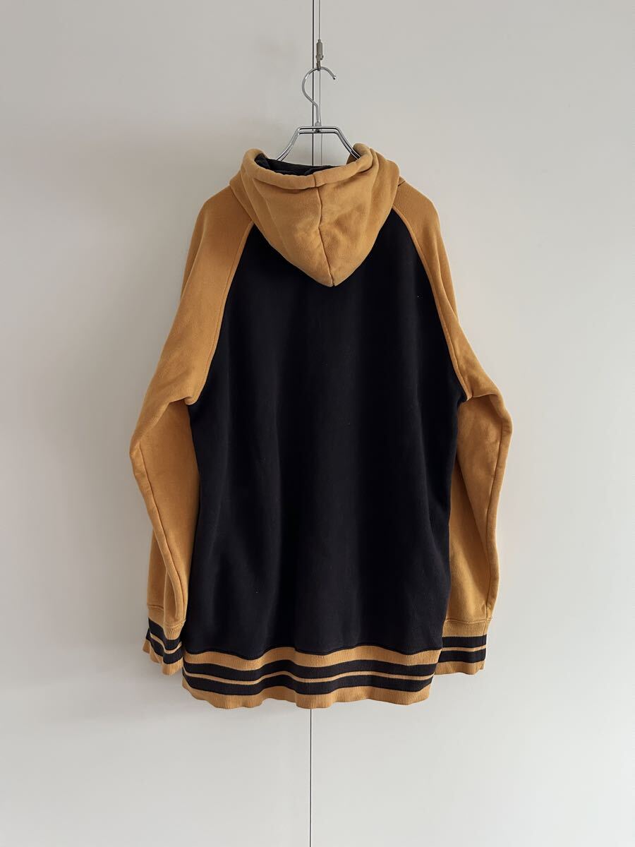 大胆な切替デザインとフロントに大きく入ったツリーロゴが存在感抜群のティンバーランドフーディ。袖にもブランドロゴ刺繍入りで、ストリートシーンで映える一枚。程よい使用感があり、スタイルにこなれ感をプラスします。