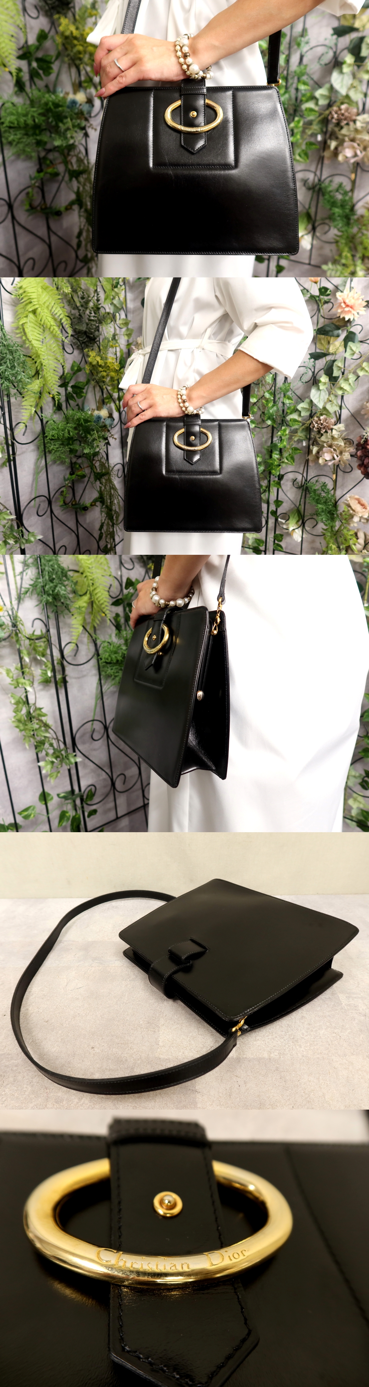 ●超美品●Christian Dior クリスチャン・ディオール●カーフ レザー 本革●がま口 ショルダー バッグ●黒●G金具●ヴィンテージ●Js60993 收藏