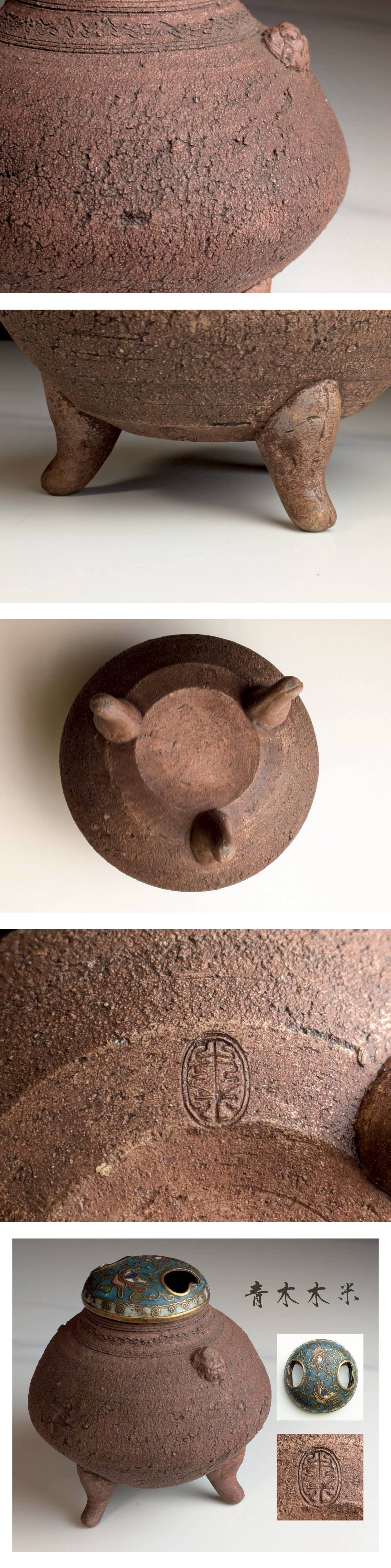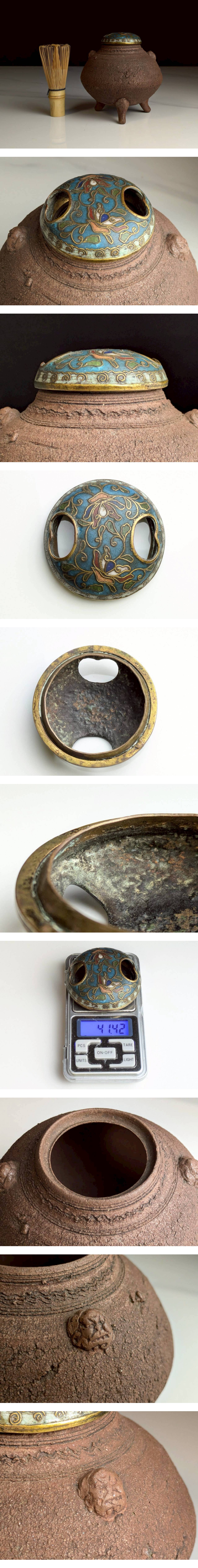 時代 青木木米 炉器 二耳三足香炉 七宝蓋 顔耳 古骨董 美術品 在銘 名品 香道具 希少品 收藏