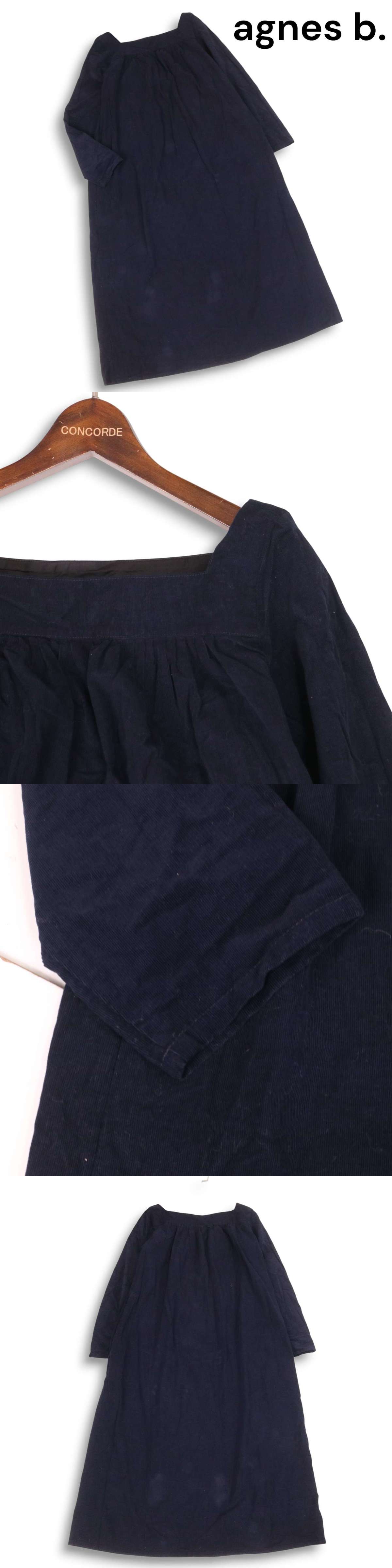agnes b. アニエスベー 秋冬 コーデュロイ★ 7分袖 スクエアネック ロング ワンピース Sz.2 レディース 紺 ネイビー 收藏