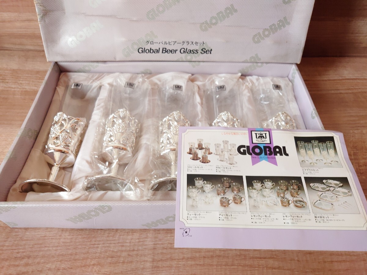 未使用【GLOBAL グローバル/ビアーグラス5客セット】ダイキャスト銀仕上/ビアグラス/シャンパングラス 收藏