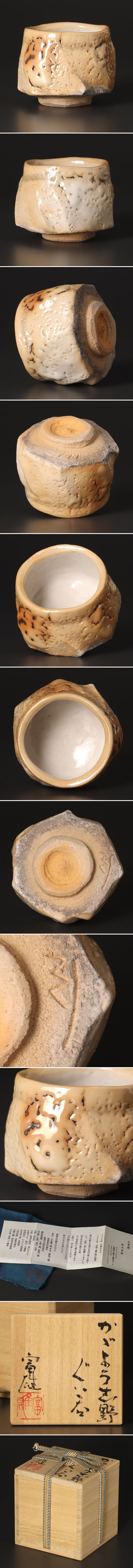 【鈴木富雄】 1948年京都に生まれる。志野焼に惹かれ、ほぼ独学にて陶技を研鑽し1988年に京都八幡に山月窯を開窯。 以降、特に展覧会への出品などは一切無く、その反面、個展では横浜、京都、大阪、富山、広島、福山、長崎など広範囲にて毎年各地の有名百家展にて作品を発表。 志野焼を専門に造り特に男性的な力強さをもった鼠志野や最新作では金色に光り輝く耀変紫金志野などを手掛け茶陶、グイ呑などで高い評価を受けている。 |