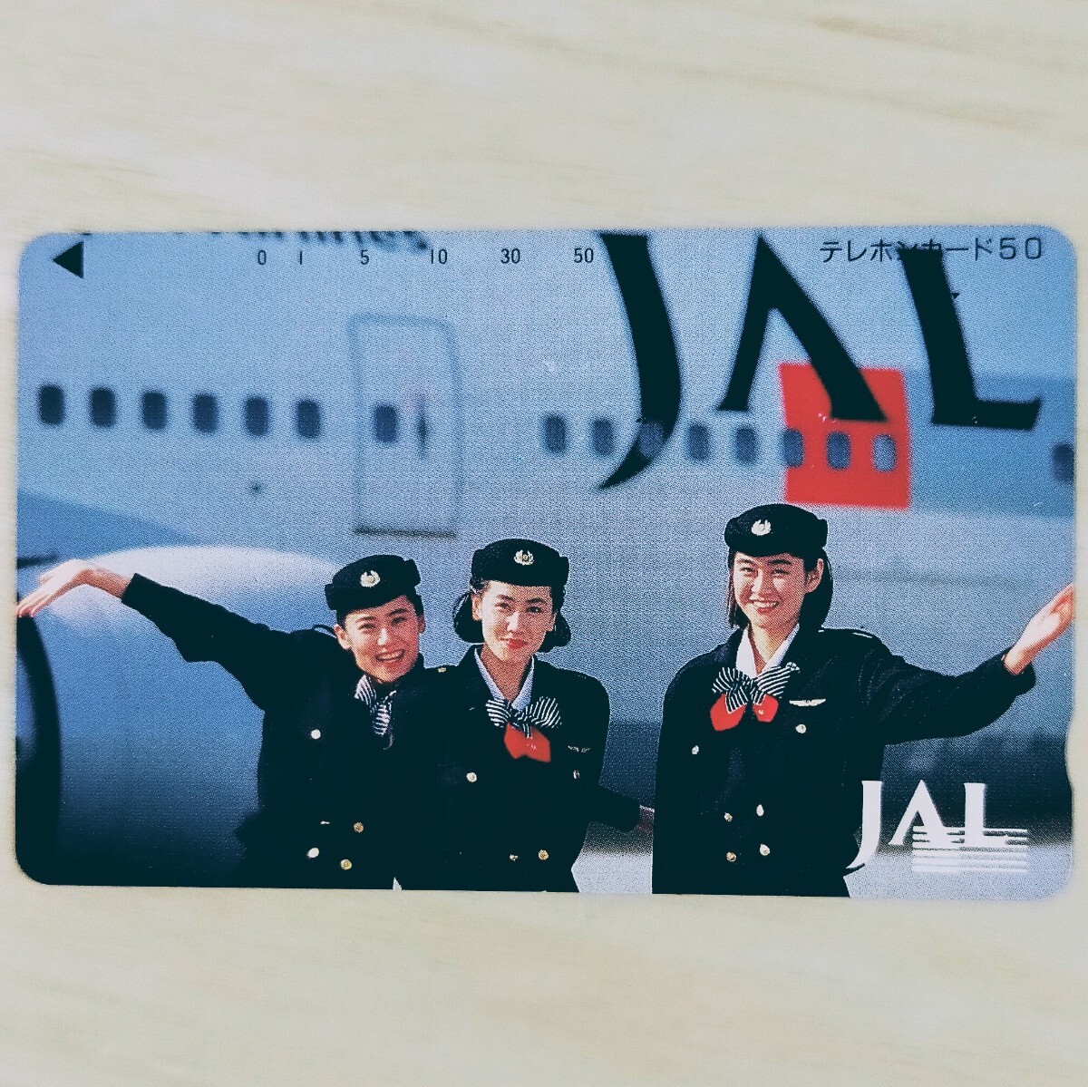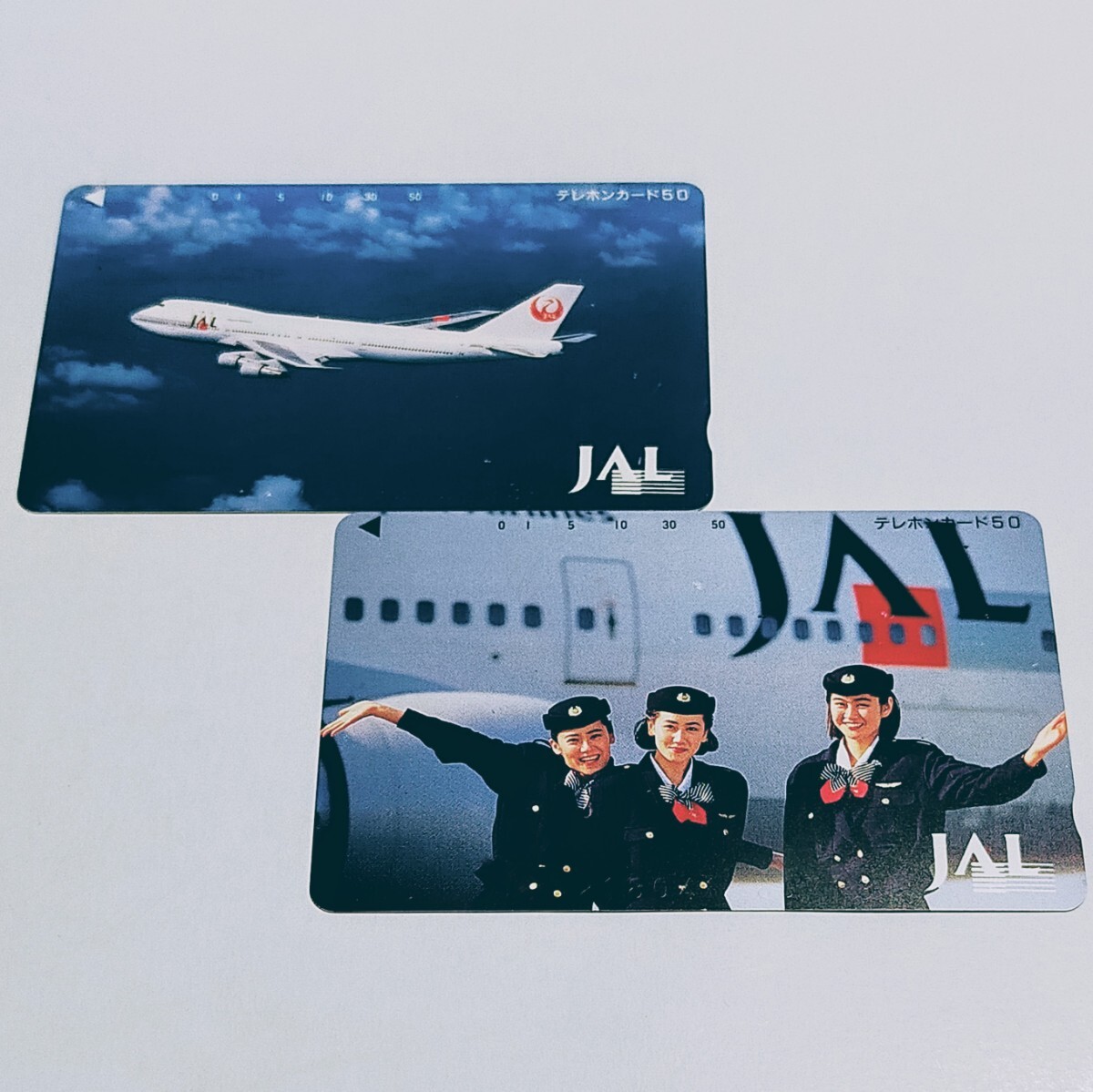 【2枚セット】JAL 日本航空 テレホンカード 50度数 1990年代 旧ロゴ B747-300? CA制服コレクション ジャンボ機 收藏